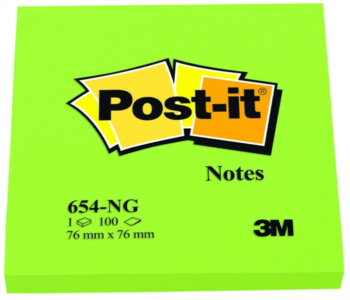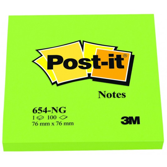 Bloczek samoprzylepny Post-it® (654n), 76x76mm, 1x100 kartek, jaskrawy zielony