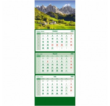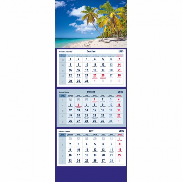- Układ kalendarium: 1 miesiąc - 1 kartka