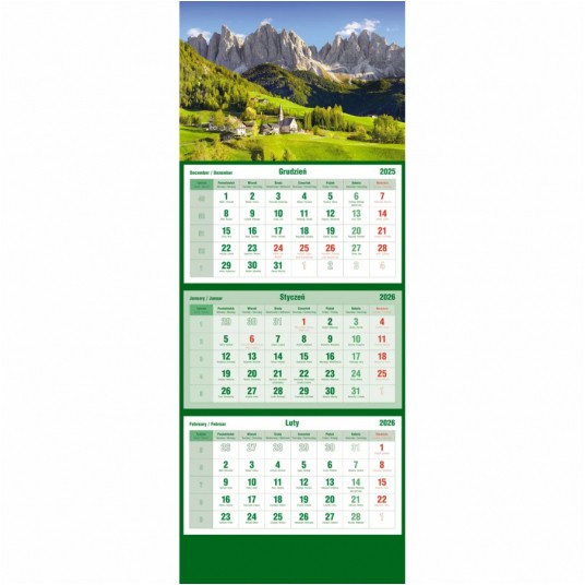 - Układ kalendarium: 1 miesiąc - 1 kartka