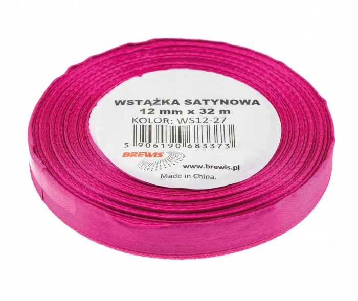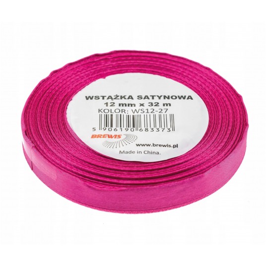 Wstążka Brewis satynowa 12mm 32m fuksja