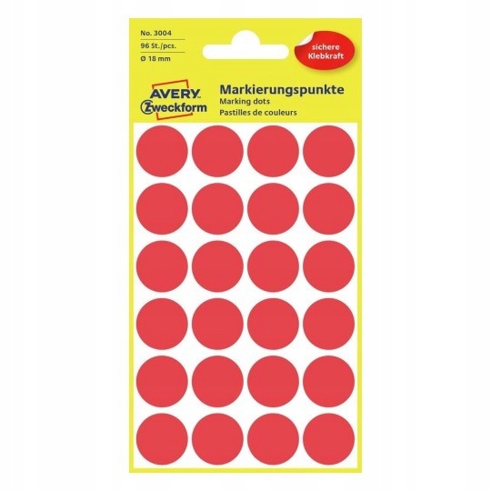 Etykiety kółeczka do zaznaczania zf3004 czerwone 18mm