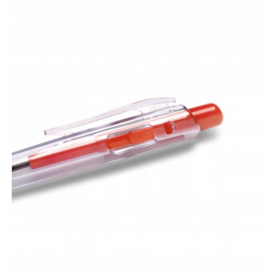 - Do codziennego pisania w szkole, domu, biurze. - Trójkątny uchwyt w długopisie Pentel BK437 pozwala na właściwe trzymanie produktu przez najmłodszych użytkowników. - Idealny do nauki pisania. - Zapewnia komfort użytkowania przez długie godziny. - Bardzo ekonomiczny i przystępny cenowo. Szybki i łatwy w obsłudze system przyciskowy. - Na wkłady wymienne BKS7H. - Przezroczyste, kolorowe obudowy (czarna, niebieska lub czerwona) ułatwiają kontrolę zużycia tuszu.