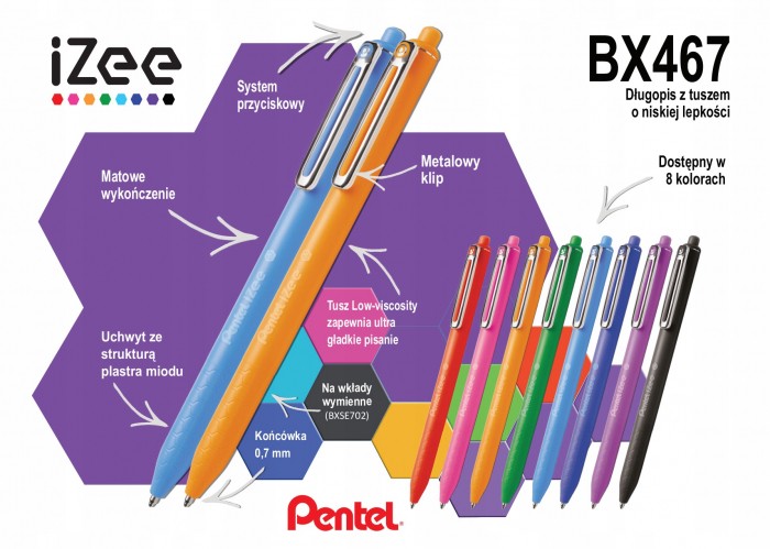 Długopis olejowy Pentel izee 0,7 mm bx467 różowy