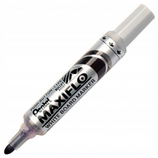 - Marker MAXIFLO do białych i ceramicznych tablic. - Płynny tusz dozowany w razie konieczności nawilżenia końcówki za pomocą tłoczka (zamiast tradycyjnego sączka). - Marker pisze wyrazistą linią aż do ostatniej kropli tuszu. - Kilkakrotnie dłuższa linii pisania niż w standardowych markerach z sączkiem - 1100 m. - Nie zawiera substancji trujących ksylenu, toluenu ani polichlorku winylu. - Nadaje się również na papier, plastik, karton. - Wykonany w 50% z materiałów przetworzonych.
