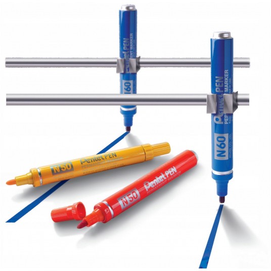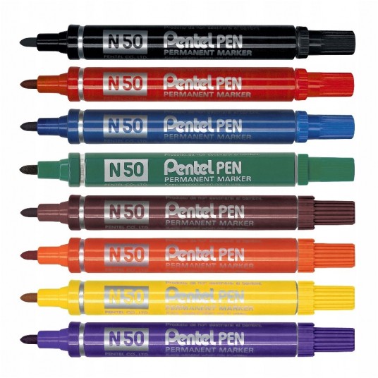 - Marker wodoodporny, z okrągłą końcówką. - Nadaje się na metal, szkło, plastik, gumę i gruby papier. - Wyjątkowo trwała końcówka odporna na odkształcanie. - Długa linia pisania - 800 m. - Hermetycznie foliowany. - Do wyboru kolor: czarny, czerwony, niebieski, zielony, brązowy, pomarańczowy, żółty, fioletowy.