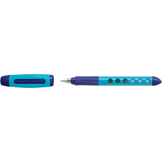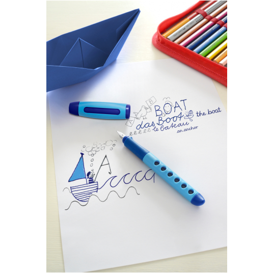 - Ergonomiczne miejsce uchwytu z miękkiego materiału wspomagające prawidłowe trzymanie trzema palcami. - Idealne do nauki pisania. - Strefa uchwytu specjalnie stworzona zarówno z myślą o osobach leworęcznych. - Wysokiej jakości irydowa stalówka – odporna na większy nacisk. - Na standardowe naboje z atramentem. - Okienka umożliwiające kontrolę ilości atramentu w naboju. - Specjalny kształt zatyczki ogranicza turlanie się pióra po ławce.