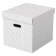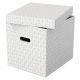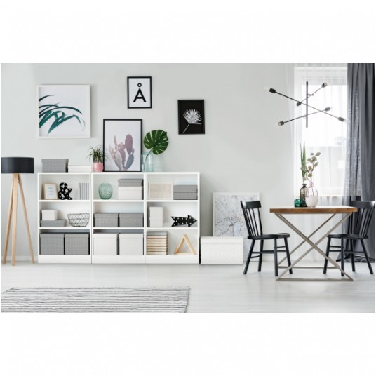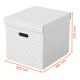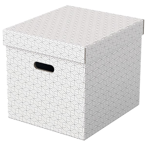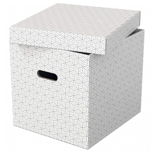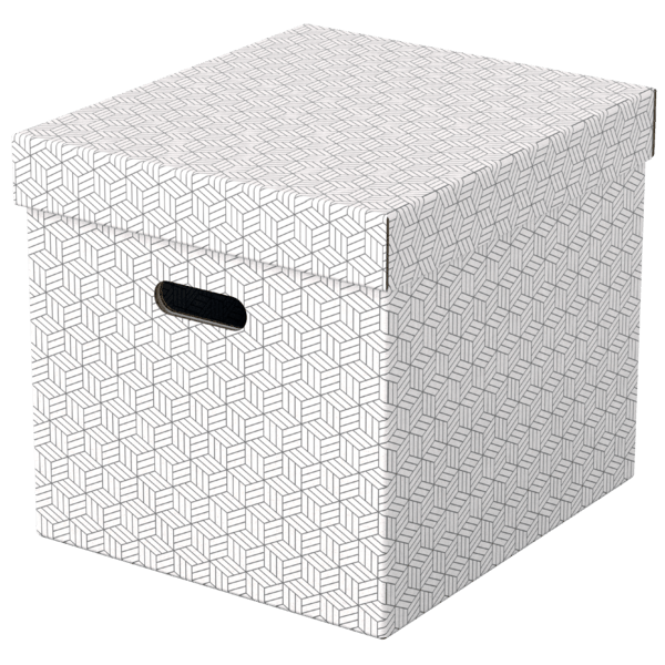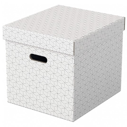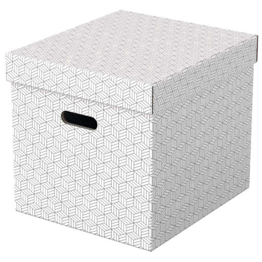 - Zestaw trzech dużych tekturowych pudełek do przechowywania w kształcie sześcianu, ze stylowym i nowoczesnym geometrycznym wzorem na powierzchni - Idealnie nadają się do przechowywania dokumentów, segregatorów, zabawek, książek i innych większych przedmiotów - Można je używać oddzielnie lub ustawiać na półkach i w szafach; idealnie pasują także do wielu regałów z kwadratowymi półkami, takich jak seria Ikea Kallaxor. - Uchwyty ułatwiają przenoszenie z miejsca na miejsce, gdy zajdzie taka potrzeba - Zdejmowana pokrywa pozwala na ukrycie zawartości pudełka i jego zamknięcie - Neutralne kolory i deseń dopełnią wystrój każdego wnętrza - Dostarczane rozłożone na płasko, do samodzielnego złożenia - składanie jest szybkie i proste - Po złożeniu boki pudełka tworzą podwójne ścianki, dzięki czemu pudełka są mocne i dobrze chronią zawartość - Łatwa od utrzymania w czystości powierzchnia - Wykonane z mocnej i wytrzymałej tektury, w 100% pochodzącej z recyklingu i w 100% nadającej się do ponownego przetworzenia. Posiada certyfikat FSC - Opakowanie w 100% wykonane z materiałów pochodzących z recyklingu i w 100% nadaje się do ponownego przetworzenia, nie zawiera plastiku