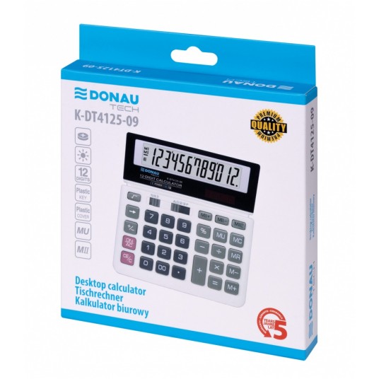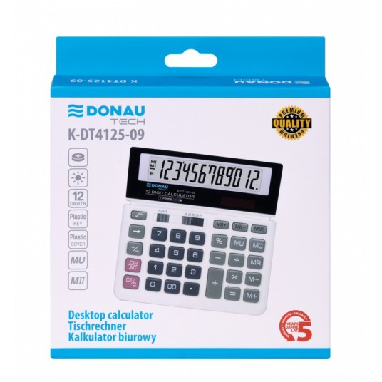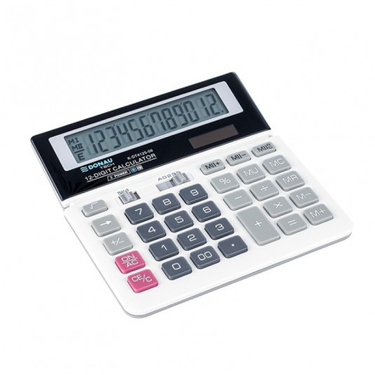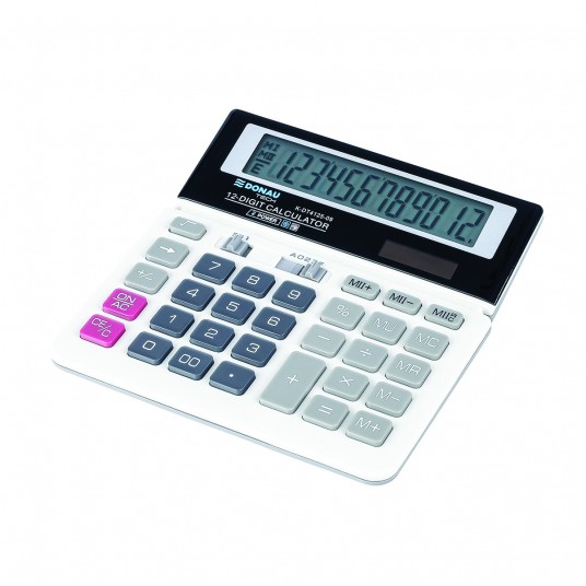 - Kalkulator biurowy z 12-cyfrowym wyświetlaczem z zasilaniem bateryjno-solarnym - Wymiary: 156 x 152 x 28 mm - Funkcja pierwiastka kwadratowego oraz obliczania procentów, obliczanie marży MU podwójne zero, kasowanie ostatniej pozycji, pamięć, ustawienie dziesiętne, zaokrąglanie wyniku, kasowanie ostatniej pozycji - Wyłącza się automatycznie - 5 lat gwarancji - Kolor: biały