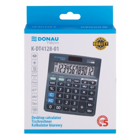 - Kalkulator biurowy z 12-cyfrowym wyświetlaczem z zasilaniem bateryjno-solarnym