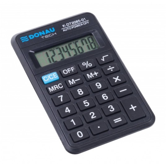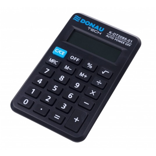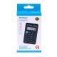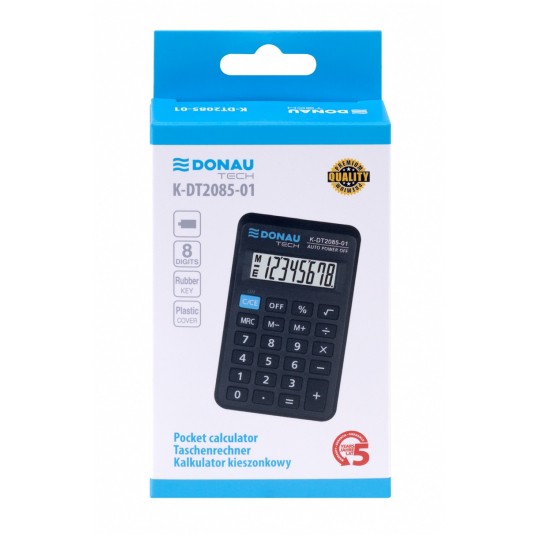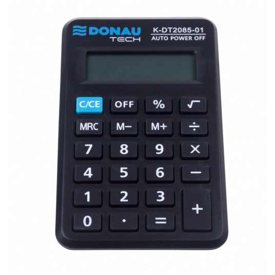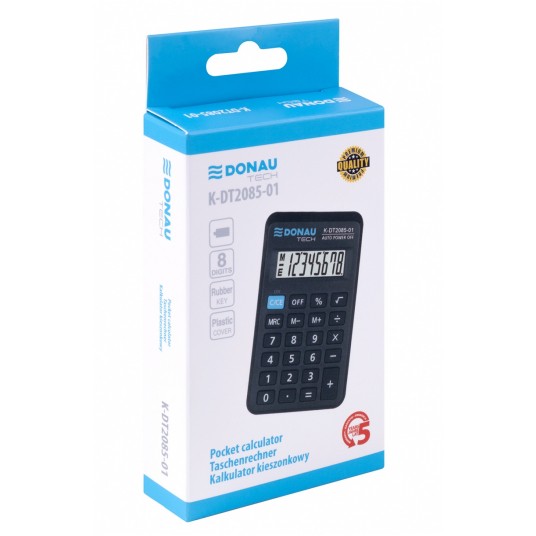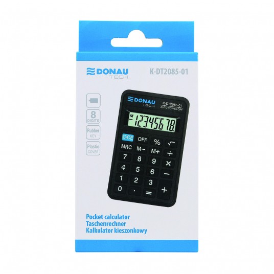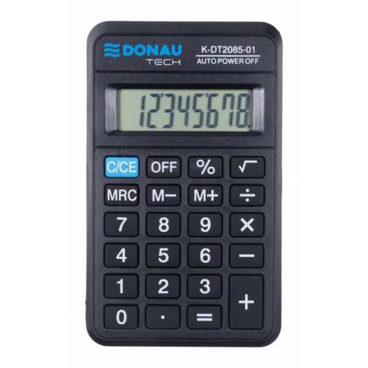 - kalkulator kieszonkowy z 8-cyfrowym wyświetlaczem z zasilaniem bateryjnym - wymiary: 114 x 69 x 18 mm - funkcja pierwiastka kwadratowego oraz obliczania procentów - wyłącza się automatycznie - 5 lat gwarancji - kolor: czarny