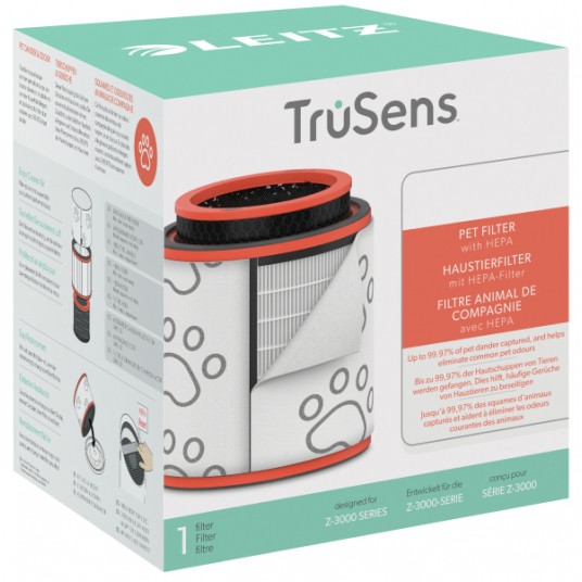 Filtr HEPA z nadającym się do mycia filtrem wstępnym wychwytuje 99,97% zanieczyszczeń wielkości 0,3 mikrona System filtracji 360 stopni zasysa powietrze ze wszystkich kierunków, zbierając zanieczyszczenia z całego pomieszczenia Wskaźnik na oczyszczaczu informujący o potrzebie wymiany filtra podświetla się na czerwono, gdy filtr wymaga wymiany Aby uzyskać najlepsze rezultaty, wymieniaj filtr bębnowy HEPA dla właścicieli zwierząt domowych co 12 miesięcy (w zależności od intensywności użytkowania) 20,87 x 21,2 cm Do używania z oczyszczaczami powietrza TruSens Z-3000 / Z-3500 Przeznaczony do oczyszczania powietrza z sierści, elementów naskórka i zapachów zwierząt domowych Opakowanie zawiera: 1 x filtr wstępny nadający się do mycia, 1 x filtr HEPA, 1 x filtr węglowy Tylko filtr wstępny przeznaczony jest do mycia, mycie ręczne w zimnej wodzie