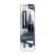 - Elegancki i niedrogi przyrząd do pisania - Wygodna konstrukcja - Niezwykle gładka i spójna stalowa stalówka - System zamykania skuwki „Slip and Seal”, który zapobiega wysychaniu atramentu - Ulepszony metalowy klips - Gustownie stonowane logo - Kolorowy, półprzezroczysty korpus wykonany z odpornej na uderzenia żywicy poliwęglanowej - Umieszczone na transparentnym blistrze - Posiada nabój atramentowy na start w kolorze granatowym - Kolor: granatowy
