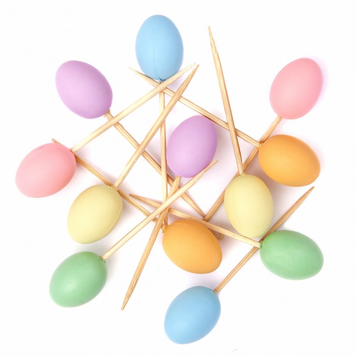 - Mini jajczka na piku w uroczych, teczowych kolorach - Wysoka jakość wykonania i matowa farba zapewniają ich naturalny wygląd - Drewniany patyczek ułatwia mocowanie np. do wianków stroików czy styropianowej bazy - Urocze jajeczka wzbogacą wiosenne kompozycje, np. wianki, stroiki, czy opakowania słodkich upominków od wielkanocnego zajączka - Wersja tęczowa, występuje tez w rozmiarze 4x3cm - Kolor: błękitny, różowy, żółty, pomarańczowy, fioletowy, jasno-zielony - W opakowaniu: 12 szt. - Wielkość: 2,5 x 2 cm