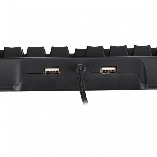 - Z tyłu klawiatury znajdują się 2 wyjścia USB obok kabla zasilającego