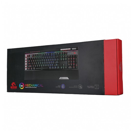 - Mechaniczna klawiatura multimedialna do gier Marvo KG965G z niebieskimi przełącznikami i regulacją głośności na pokrętle zachwyci każdego gracza